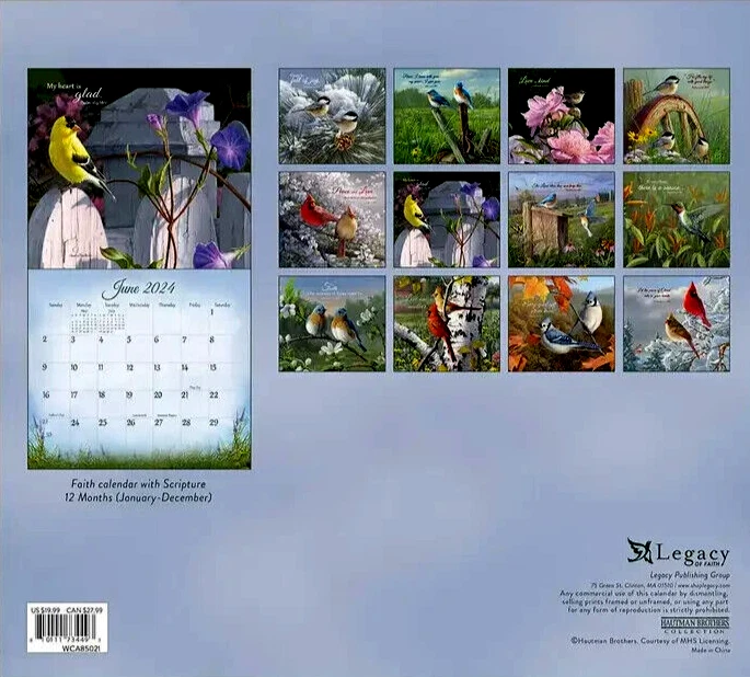 Legacy Songbirds of Faith 2024 Wall Calendar by Hautman Brothers