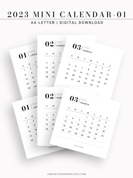 Y103 1 | 2023 Mini Calendar Printable CreffectivePaper printable